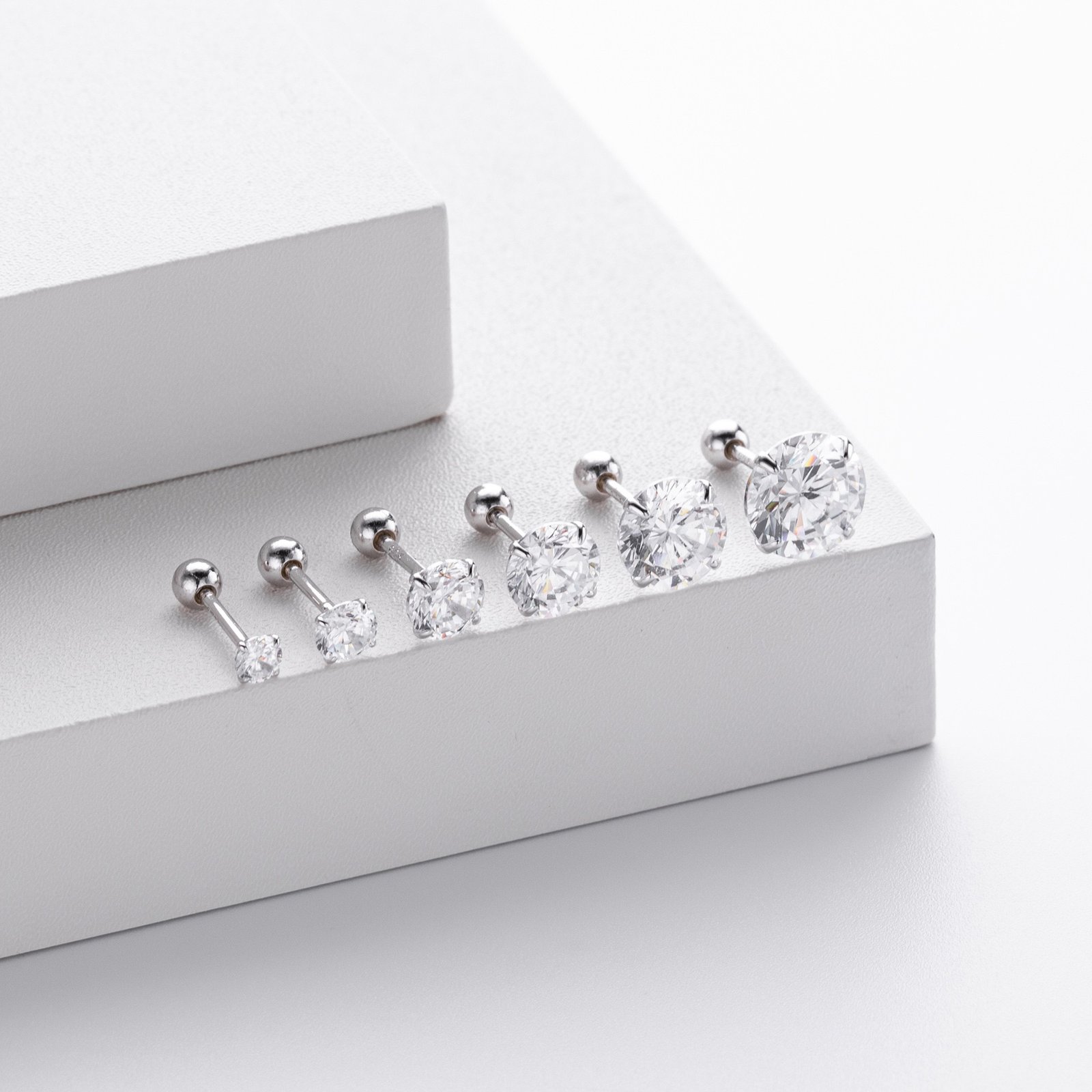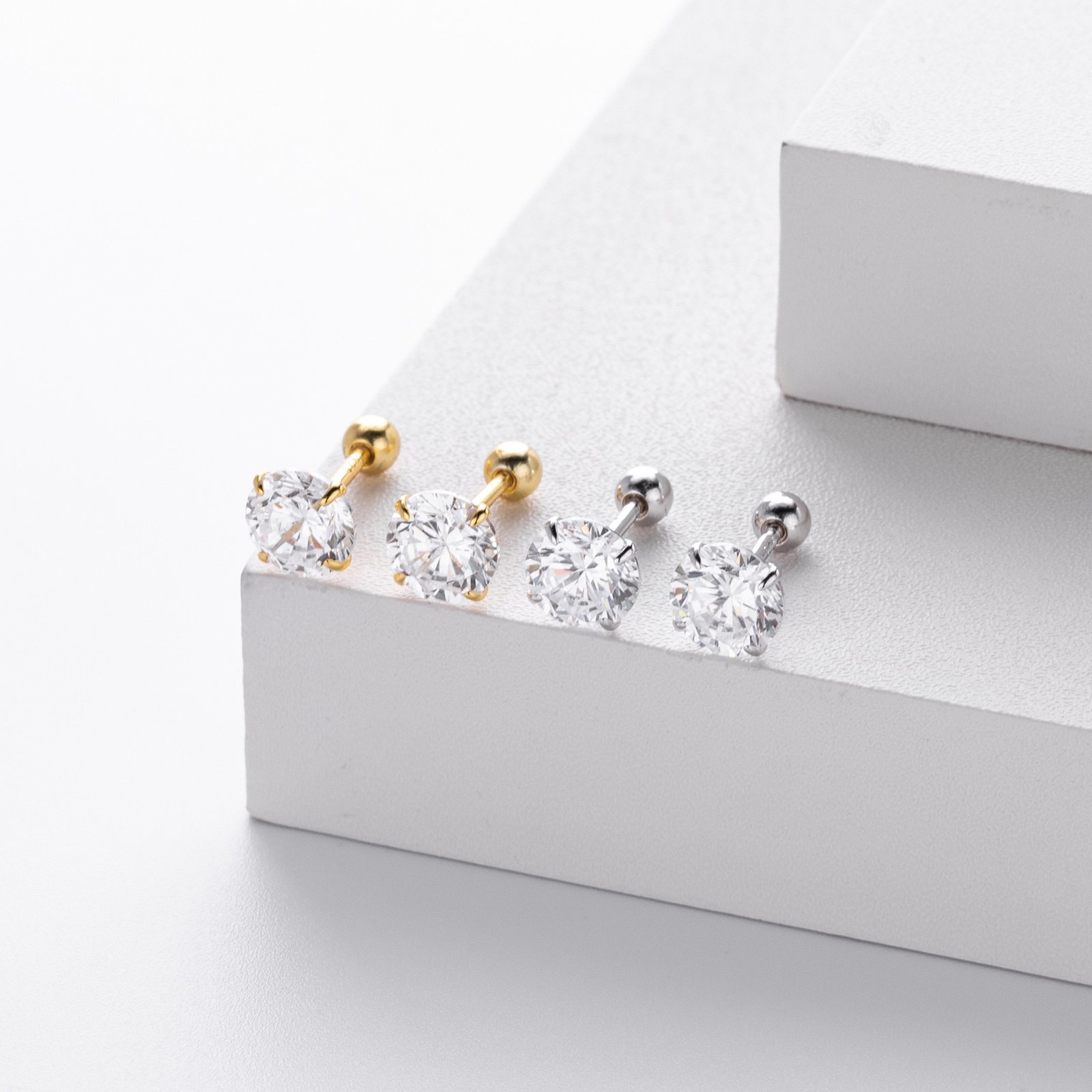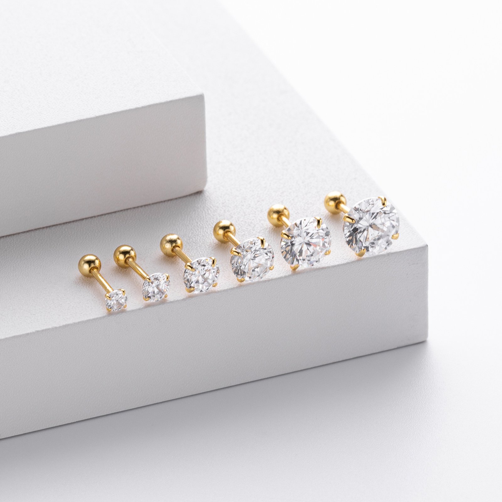 Each stud measures 0.3–0.8cm, making them perfectly subtle yet eye-catching. The screw-ball back design ensures comfort and security — you can sleep, shower, or swim with them on. A classic must-have piece that elevates any look with effortless elegance.