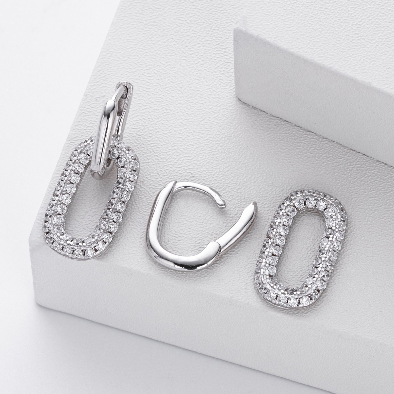 • Design: Convertible hoop + detachable oval ring with full pavé stones